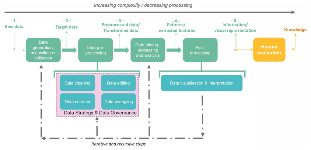 As an iterative and interactive process, KDD involves many steps and decisions of the users. Iterations can continue as long as extracted information does not satisfy the decisionmaker (see Identifying cognitive biases in digital health to improve health outcomes).