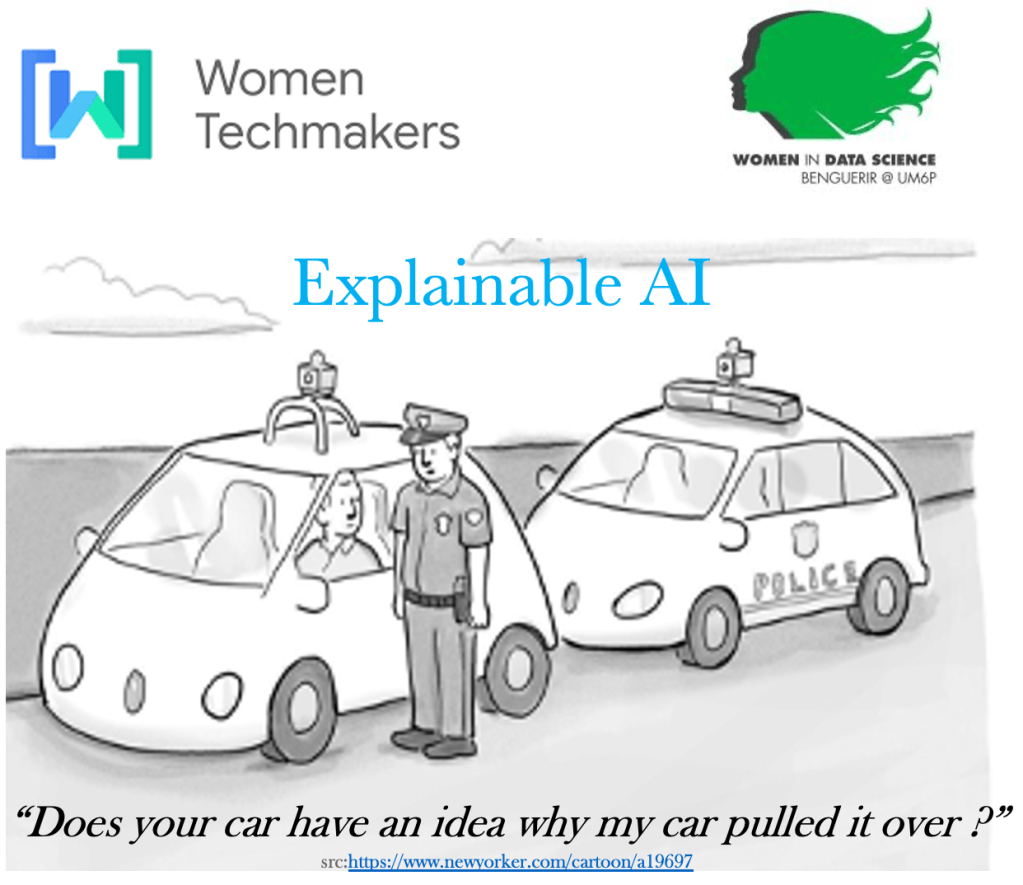 4. Keynotes for general public/technical events: For example, about Explainable AI at WomenTechMaker Montréal 2021 in French with Dr. Lina Fahed and at Women in DataScience Benguerir@ UMP6 2021 in English (see the video at 17:07)