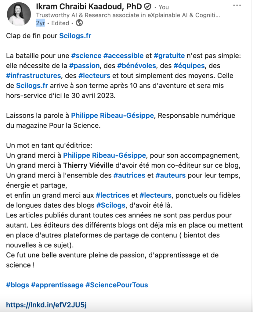 1. The Binaire Blog: Editor and author since 2021 of popularization articles in AI. Editor of more than 16 articles on different topics, with different co-editors and a diversity of authors (industrials, researchers, and students)